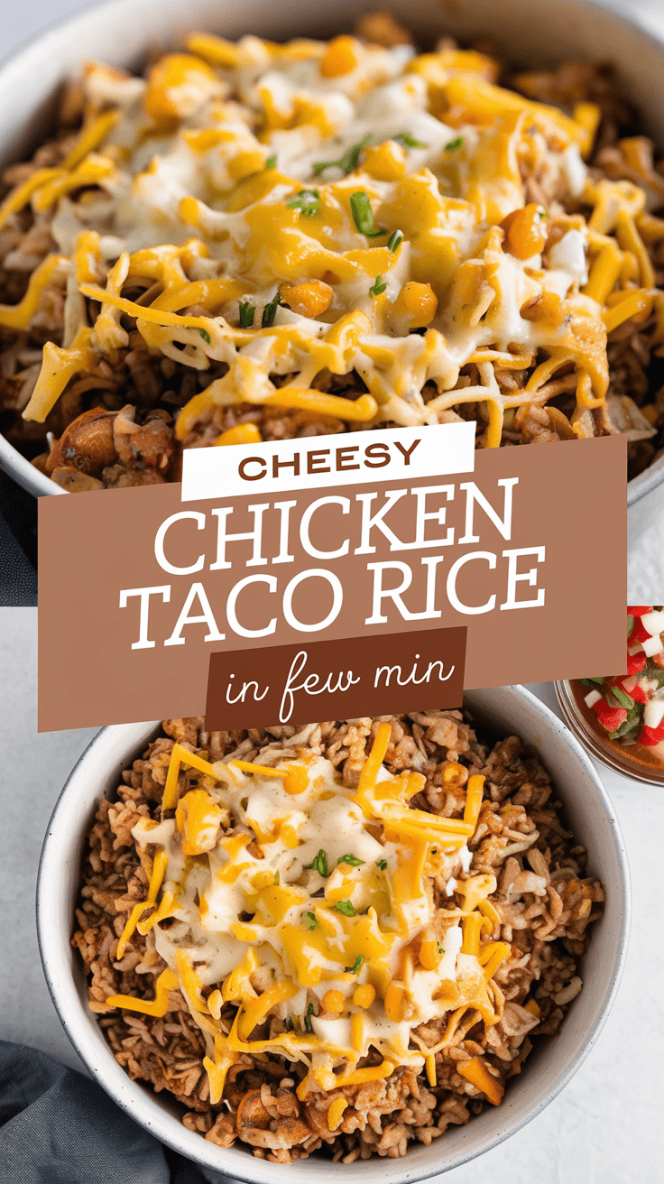 If you’ve been looking for a weeknight meal that’s equal parts cozy and exciting, this Cheesy Chicken Taco Rice is it. It’s the kind of recipe that makes everyone at the table happy without you juggling a dozen side dishes. Give it a try, then come back and tell me how you topped yours—I love hearing the little twists people add to make it their own. And hey, if your family cleans the pan in one sitting, don’t say I didn’t warn you.