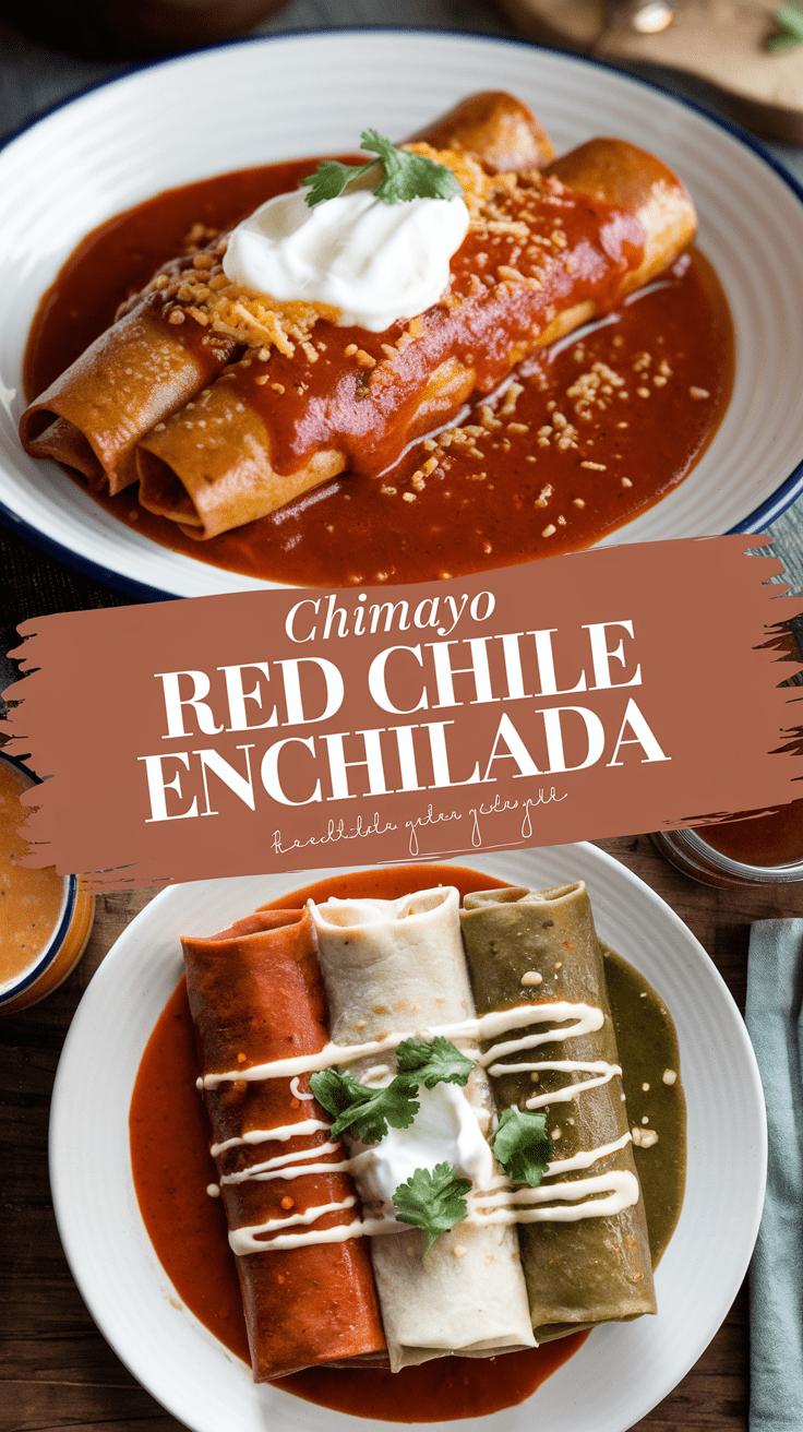 kcalChimayo red chile enchilada is a traditional New Mexican dish made with dried Chimayo chiles grown in Chimayo, N.M. These chiles are unique in that they have their own flavors: rich, slightly smoky, but not so bitter as other red chile types. The sauce, bold and silky, is poured between layers of corn tortillas, cheese, and occasionally meat, then baked until bubbling away.