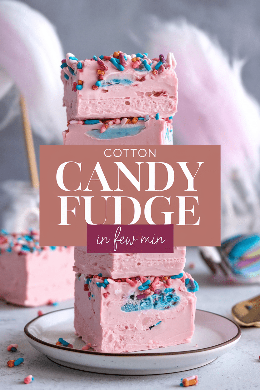Soft, creamy cotton candy fudge with pastel swirls and a smooth white chocolate base. A quick no-bake sweet treat.