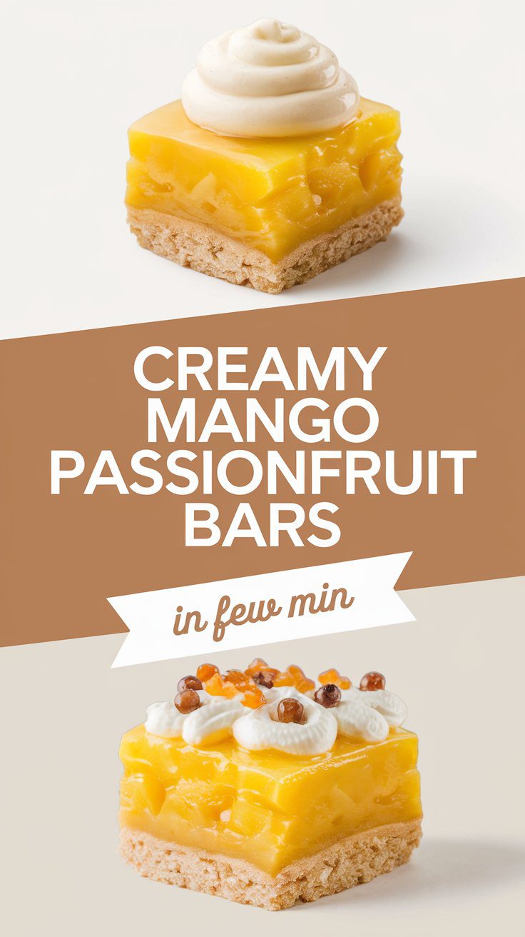 These creamy mango passionfruit bars are a bright, tropical twist on a classic traybake. They have a crisp biscuit base, a smooth and gently set fruit filling, and a fresh balance of sweetness and tang. The texture is rich yet light, with every bite melting softly on the tongue. This is an easy recipe with simple steps, taking about 30 minutes of preparation and around 2 hours including baking and cooling.