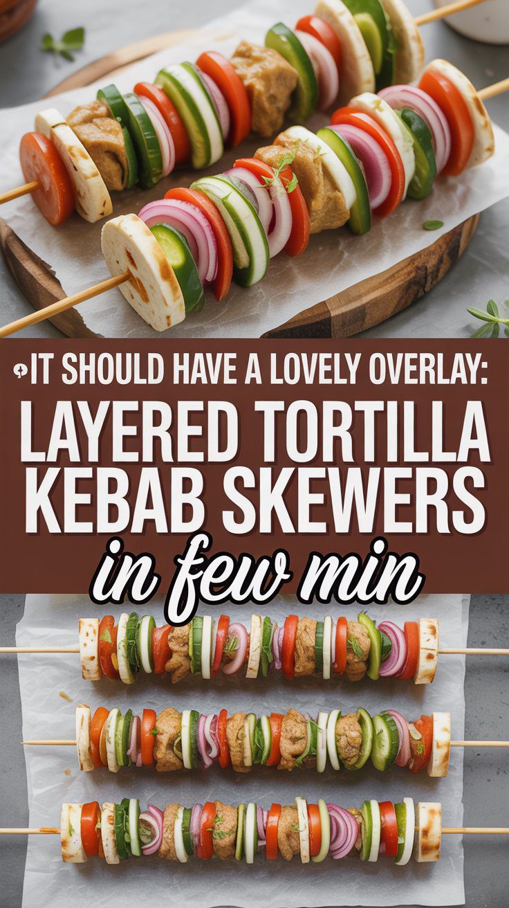 kcalThe Layered Tortilla Kebab Skewers are a fun twist on regular kebabs. Rather than serving kebabs with unleavened bread alongside, kebab meat and veggies are layered between tortillas for the skewers. Smoky meat, warm tortilla, chewy cheese, and cool vegetables are what each bite presents. In essence, a hand-held mini meal packed with flavors and textures.