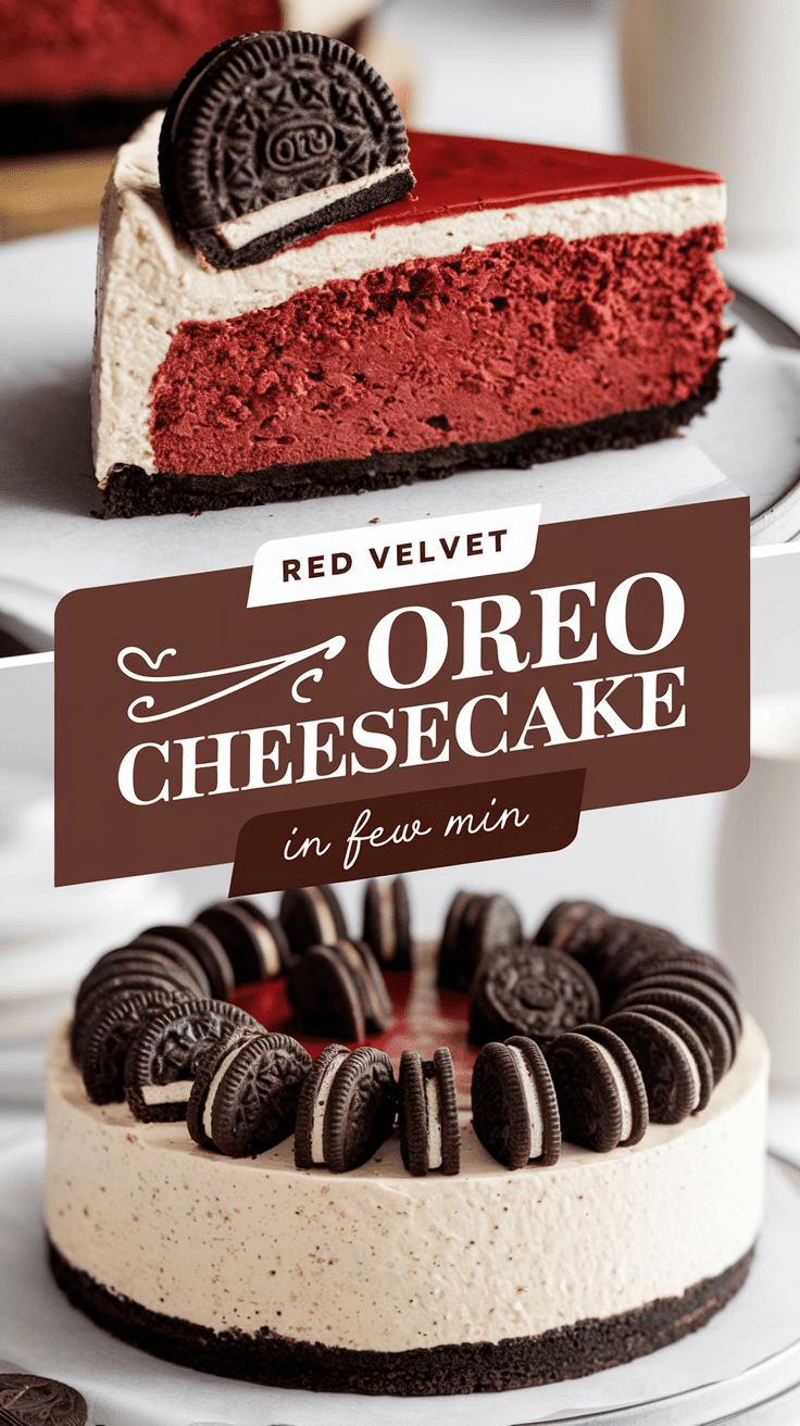 Red Velvet Oreo Cheesecake is one steal of a dreamy dessert, pairing the bold cocoa flavor of red velvet cake with cheesecake creaminess, all on a base of crushed Oreo cookies. A bright red celebration, smooth texture, and a little crunch from the Oreos create a lump of specialness from every bite. So for all you red velvet-and-cheesecake lovers, this is it!