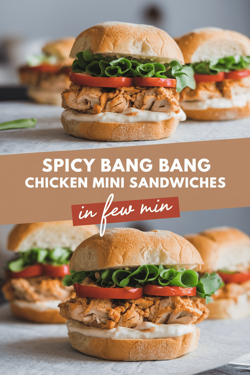 minutesCrispy baked chicken mini sandwiches coated in a creamy, sweet and spicy Bang Bang sauce. Perfect for sharing, parties, or an easy weeknight treat.