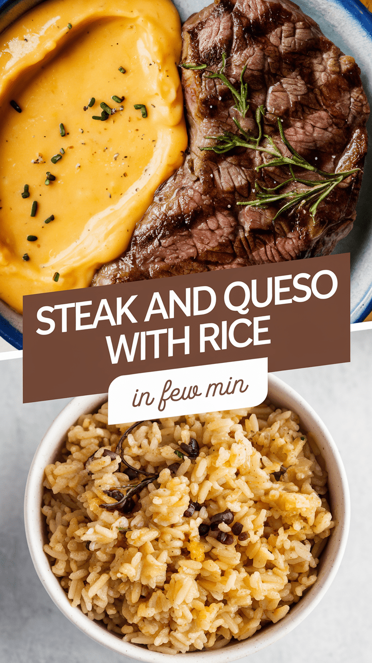 I’m sure it happens to a lot of us, but sometimes we crave that kind of meal where it’s a combination of really sinful, yet quiet, something you would just crunch into your lean chair, satisfied. Well, steak and queso with rice, that’s it for me. It’s the complete meal. Hearty, cheesy, and savory. You have some tender bites of juicy steak, creamy queso just drizzling down everything, fluffy rice soaking it all in. Honestly, feels like a Tex-Mex hug in a bowl.