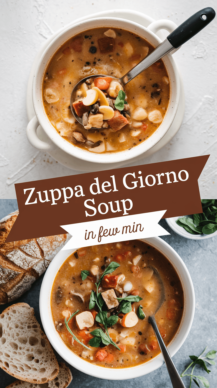 On a chilly day, there’s something very heartwarming about a hot bowl of Zuppa del Giorno. I love the surprise element in knowing that “soup of the day” can change based on what you have in your fridge. That’s my favorite one, hearty, creamy, on the flavor side, and so simple to make, family or just you need it when you want a little comfort; it’s a sure hit whenever served.